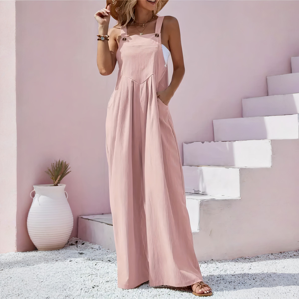 Légère comme l’air, cette salopette vous offre un bien-être immédiat. Sa matière respirante caresse la peau, parfaite pour les journées chaudes où vous cherchez à vous sentir à l’aise, sans renoncer à votre élégance.