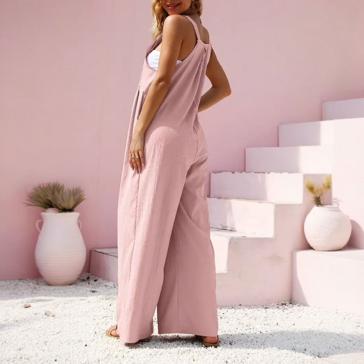 Imaginez une journée baignée de soleil, où chaque brise effleure votre peau avec délicatesse. Cette salopette rose en coton et lin vous enveloppe dans une légèreté naturelle, idéale pour savourer l’instant présent.