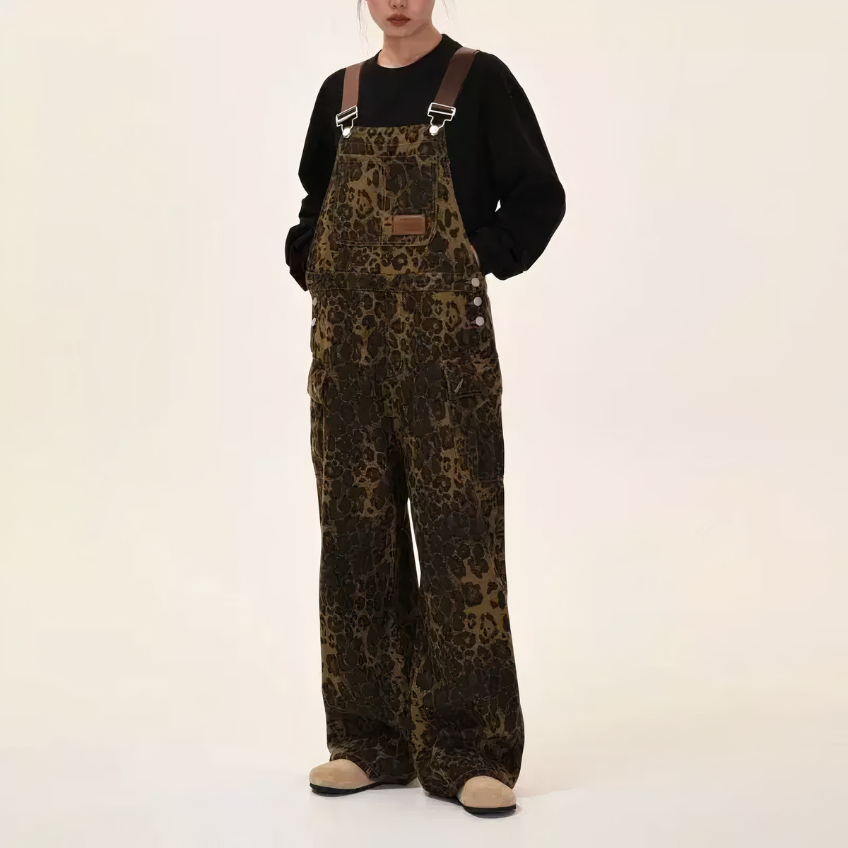 Avec son motif léopard revisité dans des nuances de vert et de brun, cette salopette bouscule les standards. Ni tape-à-l’œil, ni discrète, elle trace sa propre voie entre élégance sauvage et modernité assumée.