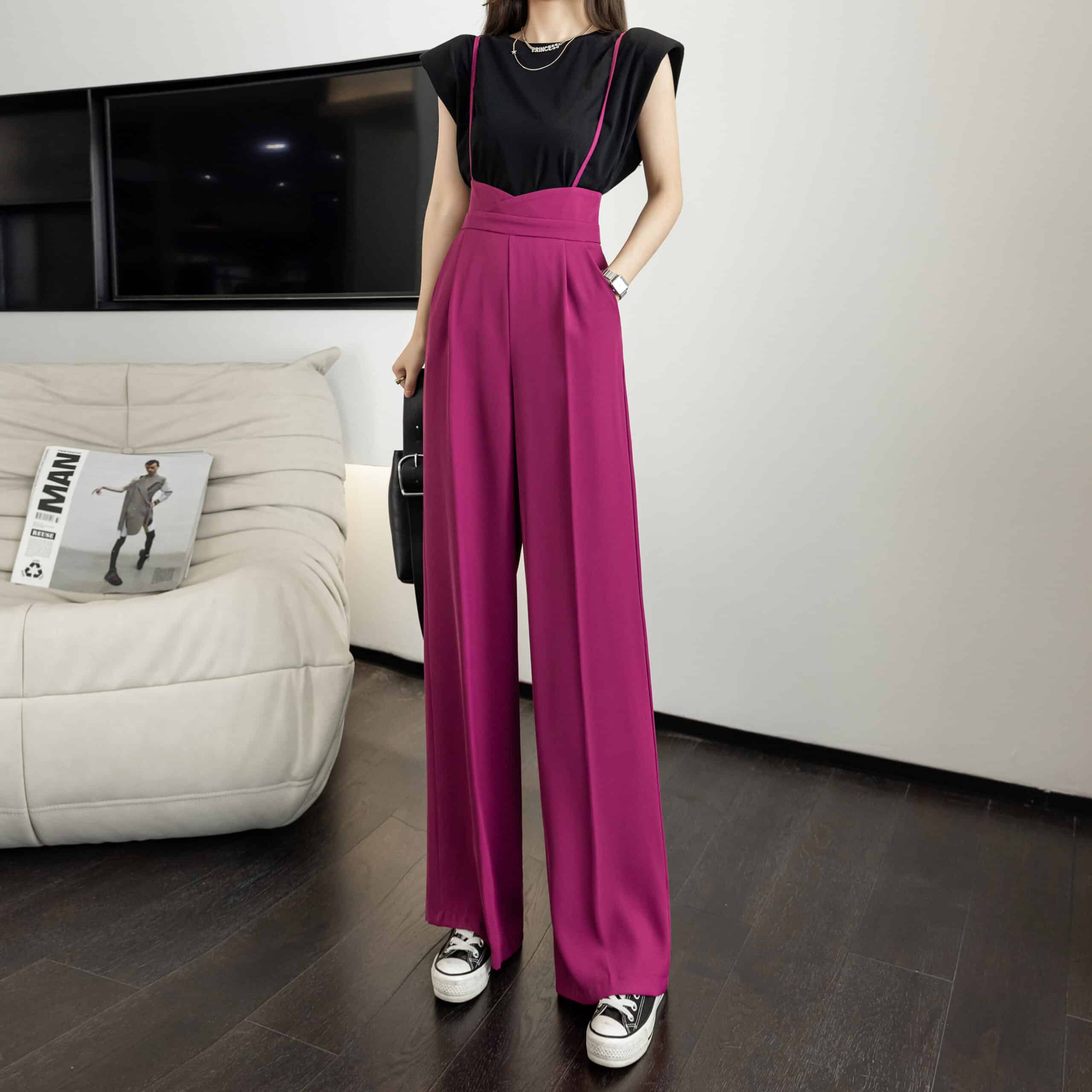 Notre salopette pantalon à bretelles réglables pour femme est une pièce chic qui vous permet d'être élégante dans une tenue agréable à porter. Voyez cette pièce comme un pantalon tenu par des bretelles. Vous pourrez le porter avec un t-shirt, une paire d'escarpins et un sac à main pour une allure minimaliste chic.