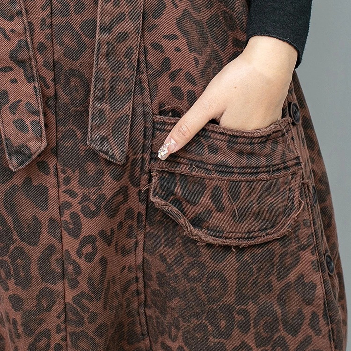 Poches plaquées généreuses, bretelles à nouer, coutures apparentes et finitions légèrement effilochées : tout est pensé pour donner du caractère. Inspirée de l’univers workwear et du street arty, cette salopette léopard affiche un charme brut et assumé.