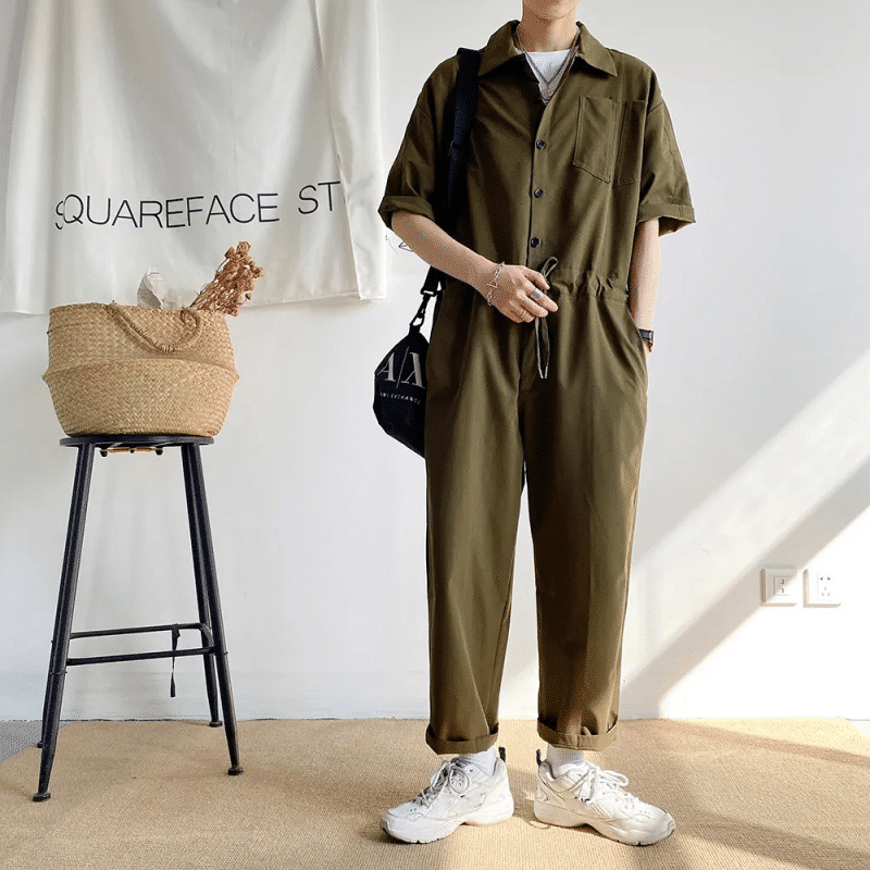 Cette combinaison salopette est inspiré des combinaisons de travail du siècle dernier, réinventée pour vous donner un style actuel entre le casual, le rétro et le chic. Faite en toile semi-épaisse, un mélange de polyester et de coton, cette combinaison est parfaite pour toutes les saisons. Facile à porter, il vous suffira simplement de choisir les chaussures qui vont avec et peut-être un bijou, comme une grosse bague, un bracelet ou une jolie montre.