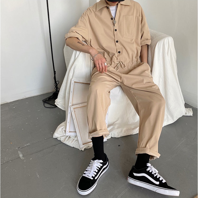 En beige, en noir ou en kaki, notre combinaison salopette promet de vous offrir une silhouette mode et tendance. Les manches courtes et amples associées au col rabattu donnent à cette pièce une allure sophistiquée et à la fois décontractée, le pantalon droit, sublime la silhouette avec une touche masculine. On porte cette combinaison boutonnée jusqu'en haut pour un côté très chic, ou légèrement ouverte sur un t-shirt pour un look plus désinvolte.
