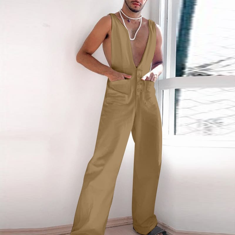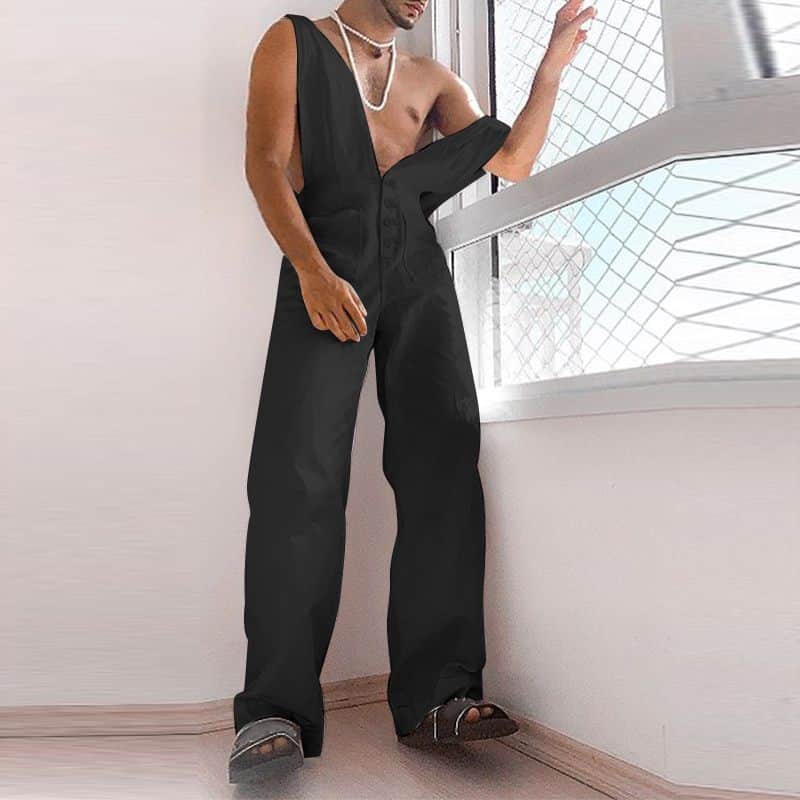 Cette combinaison salopette sexy est idéale pour les soirées habillées, les événements spéciaux ou simplement pour ajouter une touche de style à votre garde-robe quotidienne. Ce vêtement original est un choix audacieux et tendance pour les hommes qui aiment se démarquer et exprimer leur personnalité à travers leur style vestimentaire.