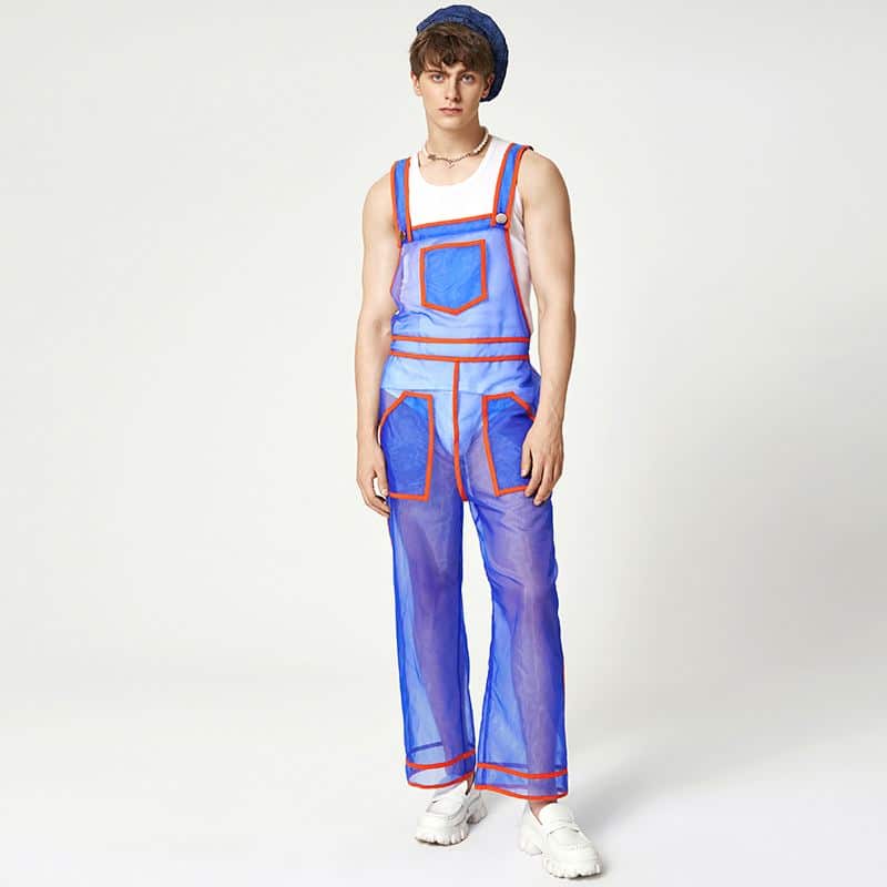 Cette salopette bleue sexy et transparente pour homme est faite d'un tissu extensible ultra doux, ce qui lui donne une sensation très agréable à porter. Sa coupe classique près du corps vous permet de le porter avec une chemise ou un débardeur et obtenir un look à la fois chic et élégant.